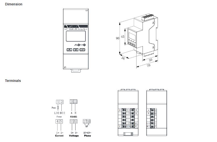 DJSF1352-RN-2 rail-mounted DC energy meter is designed mainly for DC charging piles, telecommunication base stations, solar photovoltaic and other application occasions. This series of instruments can measure voltage, current, power and positive and negative energy in the DC system. The test results can be used for local display and can also be connected with industrial control equipment and computers to form a measurement and control system.