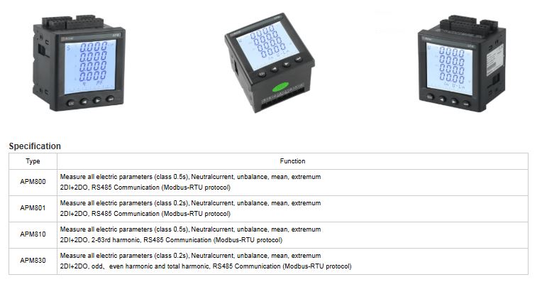 APM series power meters of ACREL are power meters that are designed according to IEC standards and synchronized with international advanced technology. APM series meters have full power measurement, energy statistics, analysis of power quality and network communications and other functions, are mainly used for comprehensive monitoring of thequality of power supply network.