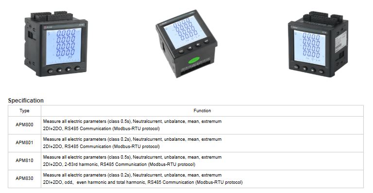 APM series power meters of ACREL are power meters that are designed according to IEC standards and synchronized with international advanced technology. APM series meters have full power measurement, energy statistics, analysis of power quality and network communications and other functions, are mainly used for comprehensive monitoring of thequality of power supply network.