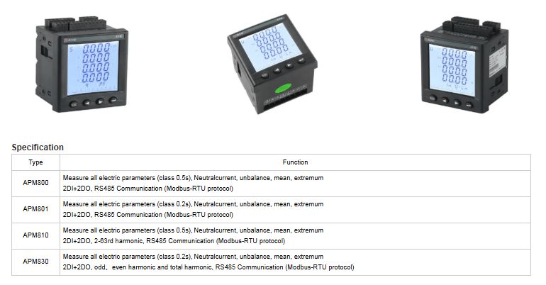 APM series power meters of ACREL are power meters that are designed according to IEC standards and synchronized with international advanced technology. APM series meters have full power measurement, energy statistics, analysis of power quality and network communications and other functions, are mainly used for comprehensive monitoring of thequality of power supply network.