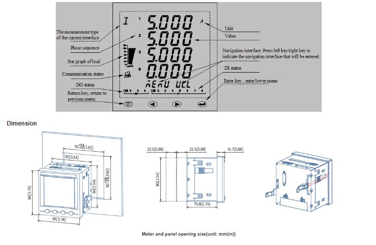 This series of meters use a modular design, with a rich function of the external DI / DO module, AI / AO module, event recording (SOE) module with T-Flash (TF) card, network communication module, can achieve full power measurement of electrical circuit and monitoring of switch status, Dual RS485 with Ethernet interface can realize data copying of RS485 master station, eliminating the need for data switching exchange. PROFIBUS-DP interface can realize high-speed data transmission and networking function.