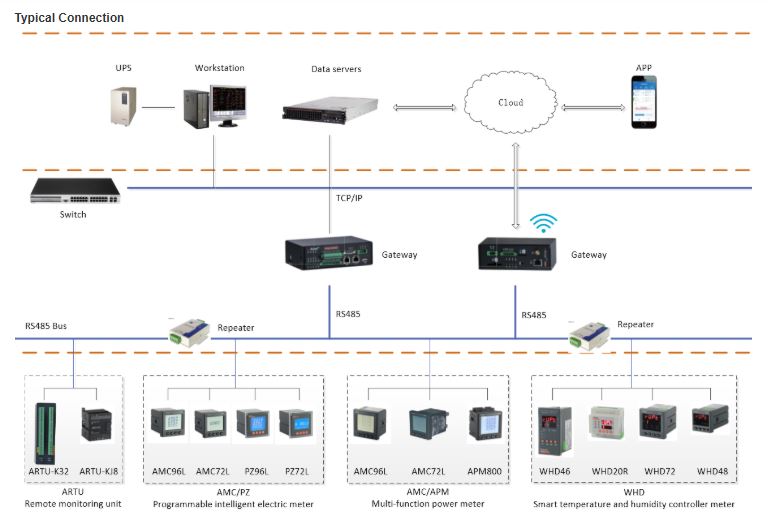 It has a variety of external excuse functions for the user to choose: RS485 communication interface, Modbus-RTU protocol, relay alarm output, digital input/output. According to different requirements, through the instrument panel keys, you can set the ratio, communication parameters.