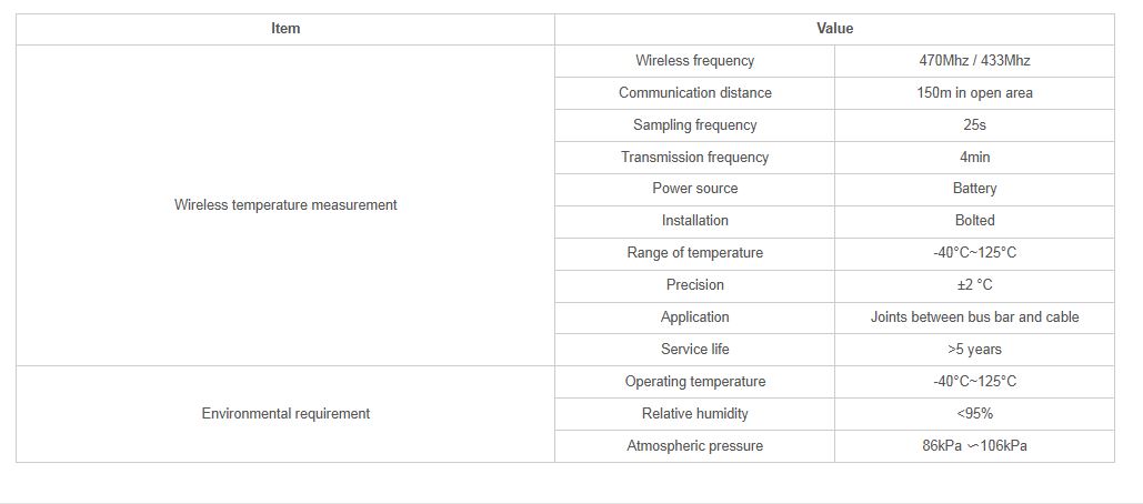 ATE300M wireless temperature sensor has been developed in compliance with Specification for Wireless Temperature Measuring equipment, NB/T 42086-2016. It is suitable for 3-35kV indoor switchgears, including built-in switchgears, handcart switchgears, fixed switchgears and loop-net switchgears. It is also suitable for 0.4kV low-voltage switchgears such as fixed switchgears and drawer switchgears.