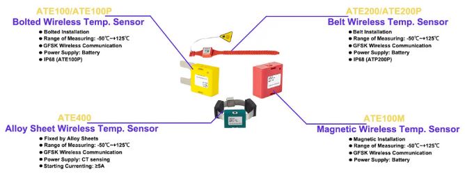 ATE200 wireless temperature sensor has been developed in compliance with Specification for Wireless Temperature Measuring equipment, NB/T 42086-2016. It is suitable for 3-35kV indoor switchgears, including built-in switchgears, handcart switchgears, fixed switchgears and loop-net switchgears. It is also suitable for 0.4kV low-voltage switchgears such as fixed switchgears and drawer switchgears.