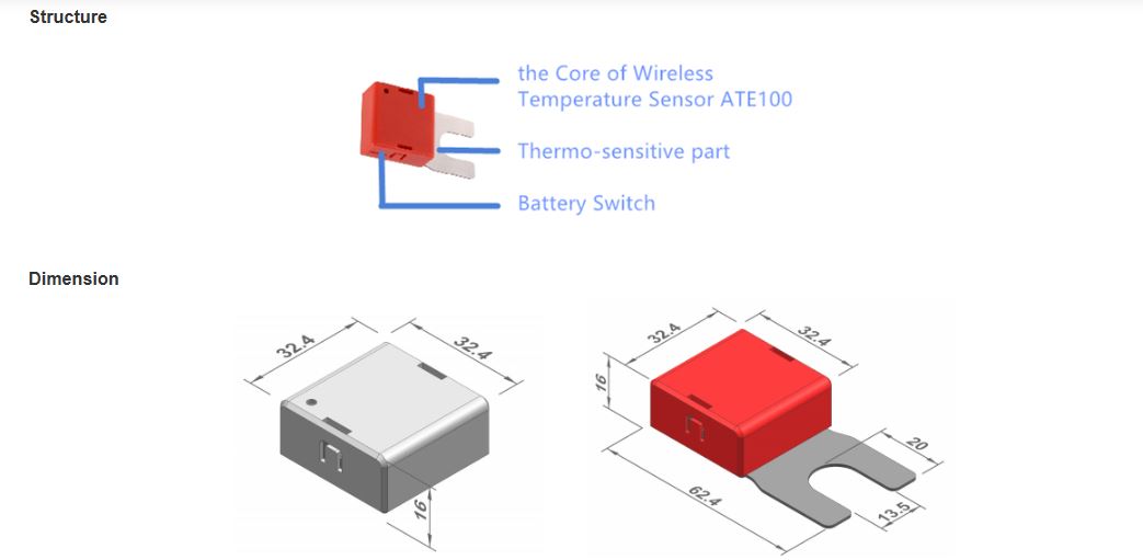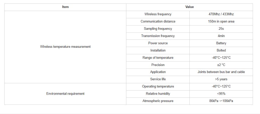 ATE100 wireless temperature sensor has been developed in compliance with specification for wireless temperature measuring equipment, NB/T 42086-2016. It is suitable for the outlet of bus bar and the overlap of cable. It is suitable for 3-35kV indoor switchgears, including built-in switchgears, handcart switchgears, fixed switchgears and loop-net switchgears. It is also suitable for 0.4kV low-voltage switchgears such as fixed switchgears and drawer switchgears.