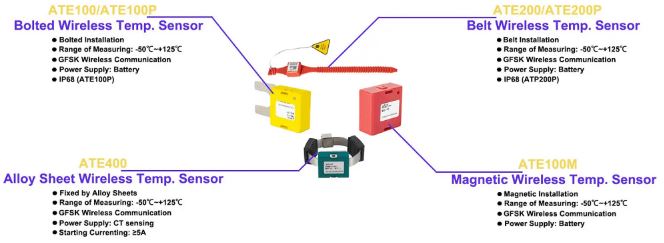 ATE400 wireless temperature sensor has been developed in compliance with Specification for Wireless Temperature Measuring equipment, NB/T 42086-2016. It is suitable for 3-35kV indoor switchgears, including built-in switchgears, handcart switchgears, fixed switchgears and loop-net switchgears. It is also suitable for 0.4kV low-voltage switchgears such as fixed switchgears and drawer switchgears.