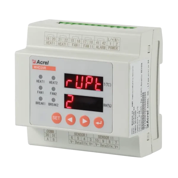 WHD series smart temperature and humidity controller is suitable for adjustment and control of temperature and humidity in equipments of high voltage switchgear, terminal box, ring network panel, box transformer substation etc. It can effectively protect relevant equipment from faults resulting from excessive low or high temperature, creepage or flashover etc. from humidity or condensation.