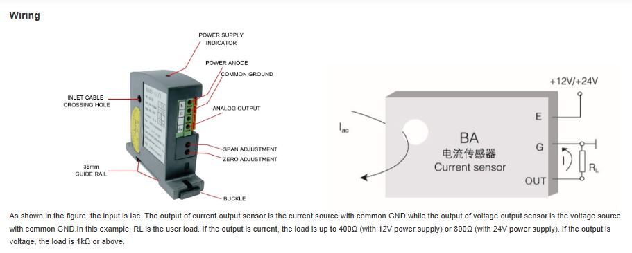 BA series conduct the real-time measurement on the alternating current in the power grid according to the electromagnetic induction theory. They utilize the precise constant current technology and the linear temperature compensation technology to isolate and convert the measured current into the DC signal.They adopt the 24V or 12V power supply. They feature the large overload capacity, high accuracy, isolation and safety and low power consumption. Applications cover the industrial automation sector.