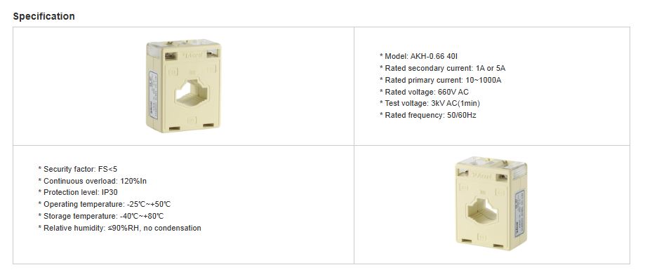 ● Model: AKH-0.66/I 40I Low Voltage Solid Core CT