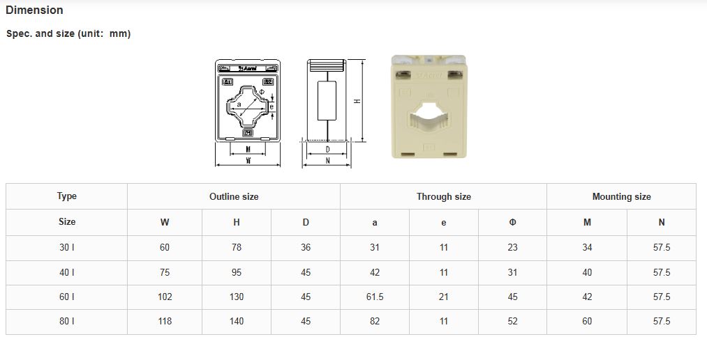 ● Suitable for cables or copper bus; Used with energy meters or relays