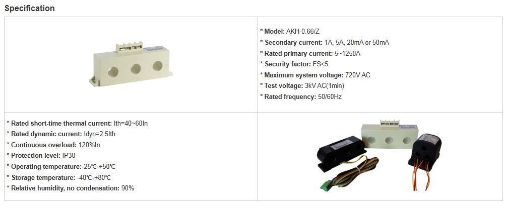 ● As current signal acquisition device, it is generally matched with multi-loop current monitoring device (AMC16), PZ300, moulded case circuit breaker and other products.
