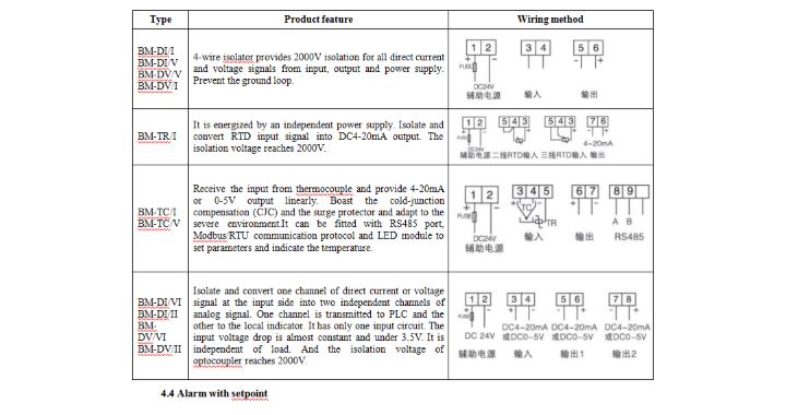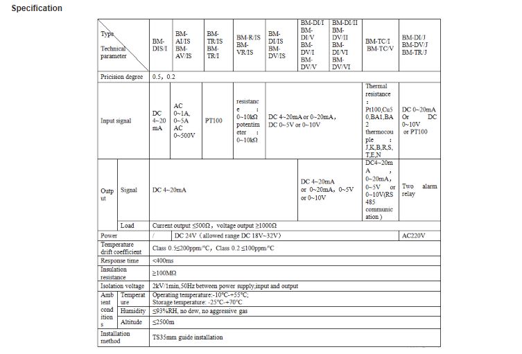 Analogue signal transducer BM series can measure electrical parameters (e.g. current and voltage) and non-electrical parameters (e.g. temperature and resistance) rapidly and accurately and isolate and convert measured values to standard analogue output signal. It can be not only connected directly with pointer gauges and digital display meters but also integrated with automatic control instruments (e.g. PLC), various A/D converters and computer systems.